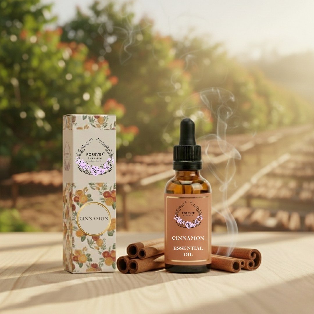 steam distilled from the bark of the cinnamon tree, also called ΰ€¦ΰ€Ύΰ€²ΰ€ΰ₯ΰ€¨ΰ₯ ΰ€ΰ€Ύ ΰ€€ΰ₯ΰ€². Known in Ayurveda for its warming and stimulating properties, cinnamon oil boosts natural immunity, aids digestion, and supports respiratory health. Its spicy, sweet fragrance energizes the body, uplifts mood, and reduces fatigue. For skincare, it helps maintain clear skin and youthful glow, while for haircare it nourishes the scalp and revitalizes dull hair. Traditionally used in healing, rituals, and wellness practices, cinnamon is also considered auspicious for attracting abundance and positivity. Spiritually, cinnamon is associated with Goddess Lakshmi, representing prosperity, wealth, and sacred energy. Forever Flourish Cinnamon Essential Oil is perfect for diffuser, massage, meditation, and puja rituals, filling your space with warmth, vitality, and divine blessings.