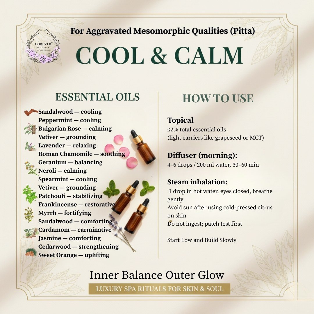 - Throat Chakra (Vishuddha): Clarifying oils like Eucalyptus, Chamomile, Peppermint, Rosemary are traditionally used to support clear communication and expression. Third Eye Chakra (Ajna): Meditative oils such as Frankincense, Clary Sage, Helichrysum are associated with enhancing focus, intuition, and spiritual clarity. Crown Chakra (Sahasrara): Sacred oils including Lotus, Neroli, Sandalwood, Lavender are valued for inner peace, mindfulness, and spiritual connection.